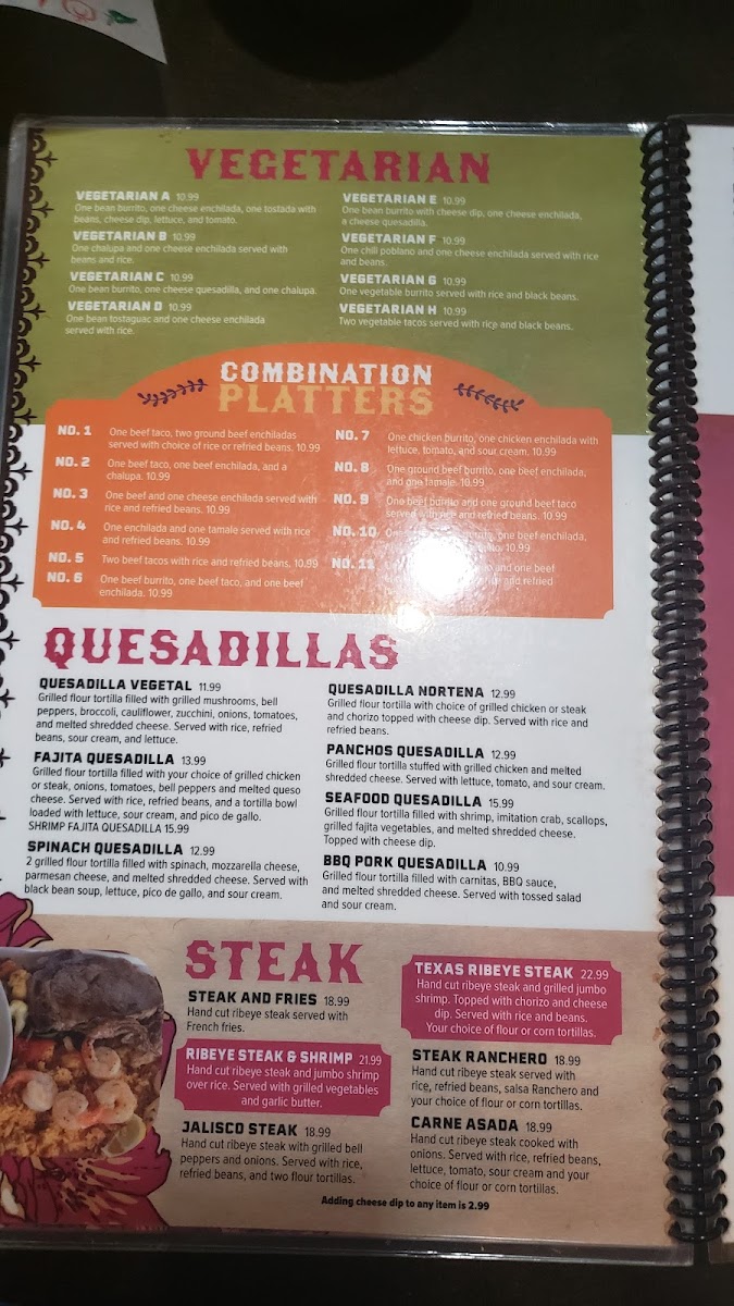 This menu fits seamlessly with the restaurant’s inviting atmosphere, making it a great spot to enjoy a relaxed lunch or dinner. Whether stopping by for a quick snack like shrimp tacos or settling in for a more substantial meal like a molcajete grilled with your choice of chicken, steak, or shrimp, there’s something to suit different appetites and occasions.